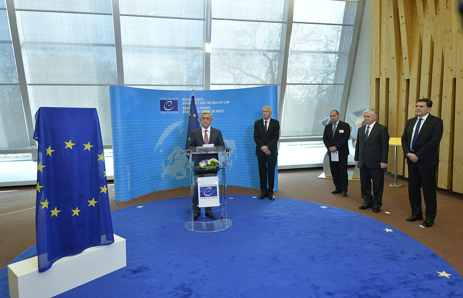 По прекрасной существующей в Совете Европы традиции, а также в связи с 65-летием вступления в силу Европейской конвенции по защите прав и основополагающих свобод человека сегодня Армения преподносит в дар Совету Европы одно из самых ярких созданий культурно-исторического наследия армянского народа - армянский хачкар. Для нас большая честь и гордость, что он отныне будет жить в сердце Страсбурга, под эгидой прав человека и демократии в знак нашей безусловной верности этим ценностям.
