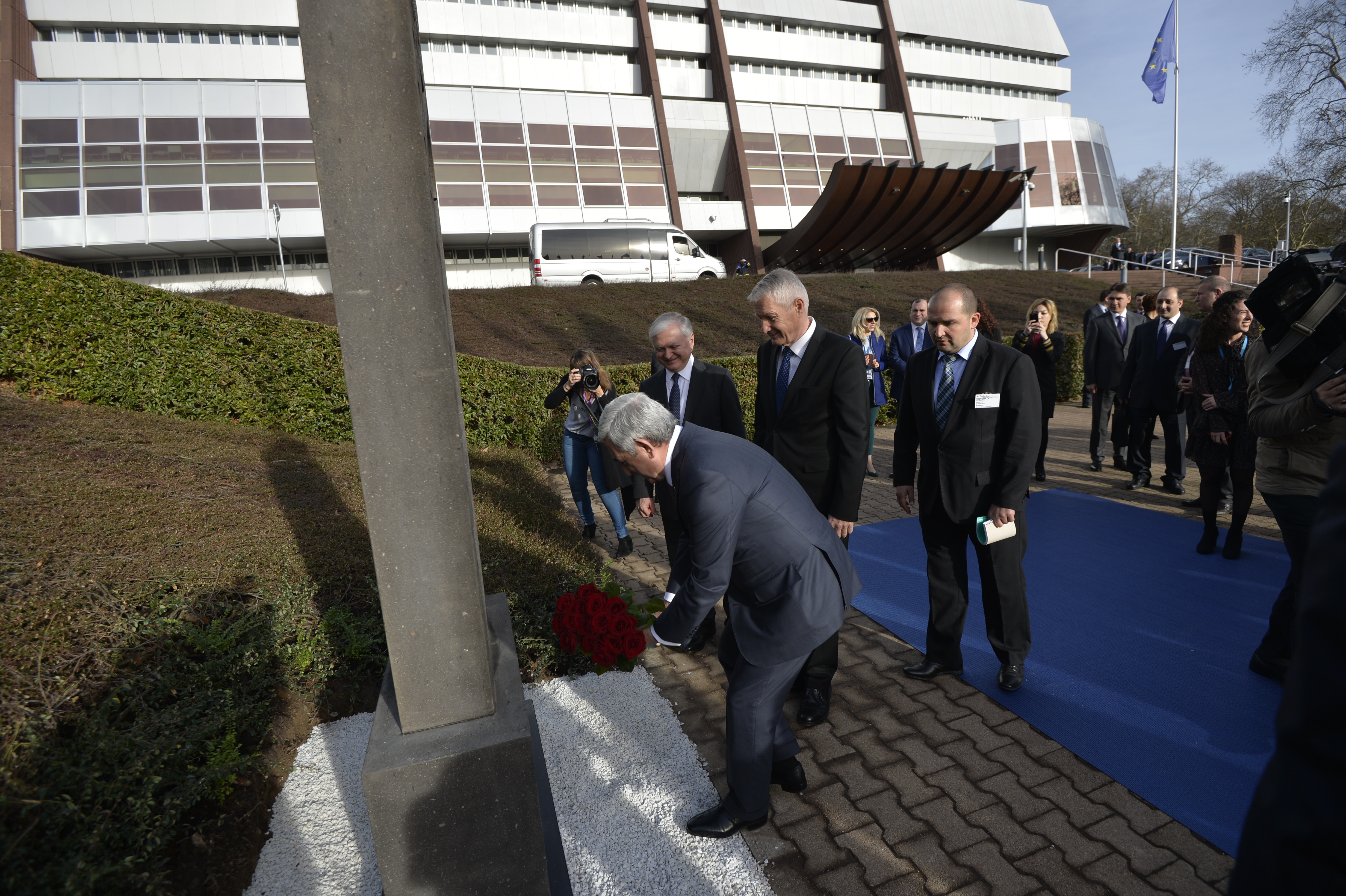 Этот камень и Ваше личное присутствие здесь сегодня, президент Саргсян, четко выражают приверженность Армении нашим ценностям и нашему общеевропейскому правовому пространству. В наши времена, полные вызовов для Европы эта преданность наиболее важна и наиболее ценна. В самом деле, после присоединения к Совету Европы в 2001 году Армения, осуществив ряд всеобъемлющих внутренних реформ, сделала значительные шаги во исполнение своих обязательств. Процесс ещё продолжается, однако уже зарегистрировал существенный прогресс.
