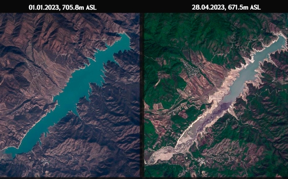 Прилагаются: Спутниковые снимки Сарсангского водохранилища, сделанные 1 января и 28 апреля с высоты 705.8 и 671.5 метра над уровнем моря", - отмечается в заявлении.