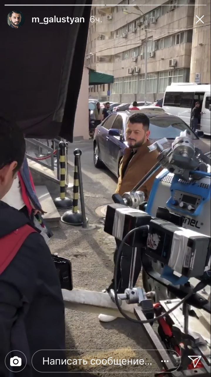 В другом видеоматериале видно, что он стоит перед камерой, на съемочной площадке. Галустян пока не сообщил, для чего ведутся съемки в одном из ереванских дворов.
