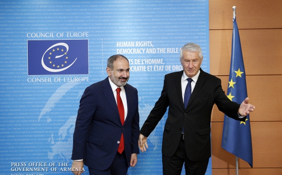 Премьер-министр Никол Пашинян в рамках рабочего визита в Страсбург сегодня встретился с генеральным секретарем Совета Европы Турбьёрном Ягландом.